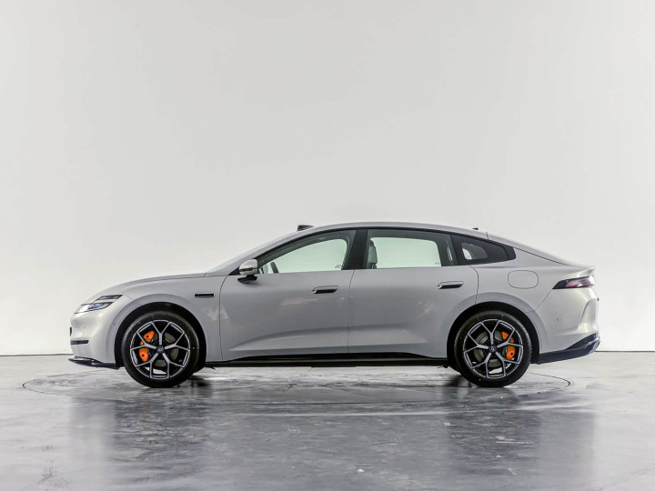再来看车身侧面部分,长安启源A06完全是一台标准的中型轿跑姿态。4885mm的车长、1916mm的车宽搭配2922mm的超长轴距,让整车比例修长协调。溜背式车顶线条从A柱顺滑延伸至车尾,配合微微上翘的鸭尾设计,既降低了风阻系数,又营造出强烈的运动气息。无框车门、半隐藏式门把手和无边框后视镜这些时尚元素的加入,进一步强化了轿跑属性。无框车门关闭时的静谧性丝毫不逊色于传统车门,开启时却能带来满满的仪式感;隐藏式门把手在车辆解锁时自动弹出,锁车时收回,既降低风阻又提升科技感。